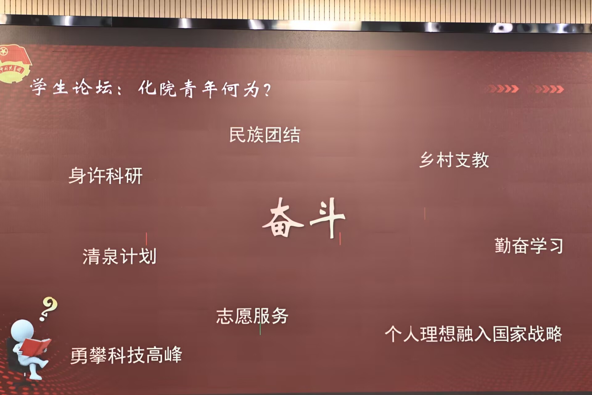 在五四青年节到来之际,中共中央总书记、国家主席、中央军委主席习近平给新疆克孜勒苏柯尔克孜自治州阿图什市哈拉峻乡谢依特小学戍边支教西部计划志愿者服务队全体队员回信,向全国广大青年致以节日祝贺并提出殷切期望。习近平总书记指出,越来越多年轻人选择到西部、到乡村、到基层志愿服务,无私奉献,展现了新时代中国青年昂扬向上的精神风貌和强国有我的责任担当。为认真学习习近平总书记的回信精神,2025年5月20日,2022级星拱班团支部与“清泉计划”社团功能型团支部联合开展主题团日活动,将化学知识运用于生活,以志愿服务的形式为社区居民做出贡献。